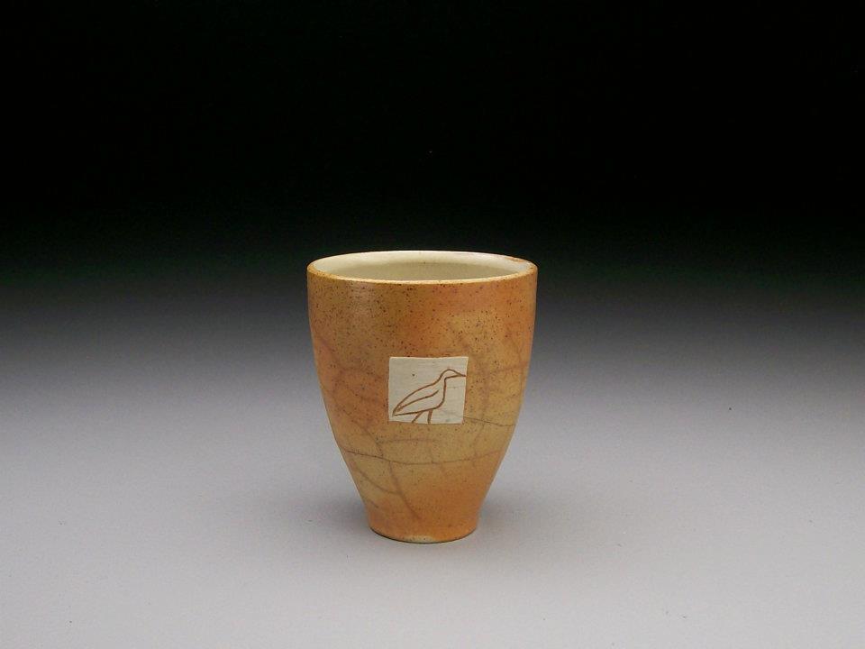 As a kid, I was always drawing. It’s just what I did when I got bored… and eventually it brought me to study art in college. Starting out at the university, I worked in two-dimensional mediums like ink and acrylic paint. When registering for my second year of college on campus, I decided to take an intro ceramics class on a whim. I got hooked on the wheel and decided to go on to the intermediate class. It took me a couple of semesters before I started decorating my surfaces with more than just a layer of “shop glaze”. I wanted to bring my two-dimensional background back into play by using stained slips on my work. Recently, I have been atmospheric firing in salt and incorporating sgraffito lines into the painted slips. With my salt-fired work, I use a reactive clay body that flashes warm tones of peach and orange when bare and fired in oxidation, and only recently have I combined glaze, salt-fired bare clay, slip, and sgraffito into my work. For me, the idea of holding a cup in my hand is as nearly as intimate as getting to know the lips of a loved one. It takes time to grow into a cup. How it feels in my hand, how the rim invites me to drink, and whether the rim drips when I pull it away are all things that change with every cup.