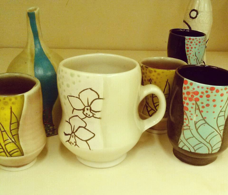 The sun shines! So be happy! Lately, I’ve had my own flaws… I complain a bit too much when I forget the good and simple things in life. So try not to forget them. They are what really matters– sunshine outside, green grass and leaves, birdsong, light out the window, a simple sincere hug, the opportunity to learn and walk away unscathed with something to show for it. The small things and whether you appreciate them are what can determine your quality of life. If you think about it, simple little things are the best things. I felt overjoyed when I opened my kiln this morning and peeked inside at these little pots (photo at top). I was grinning almost the entire time I was unloading. That has never happened with a firing for me until today. I am grateful for the few perfect little pieces the kiln gave me. I have a lot more than what’s in this photo, but they wouldn’t all fit 🙂