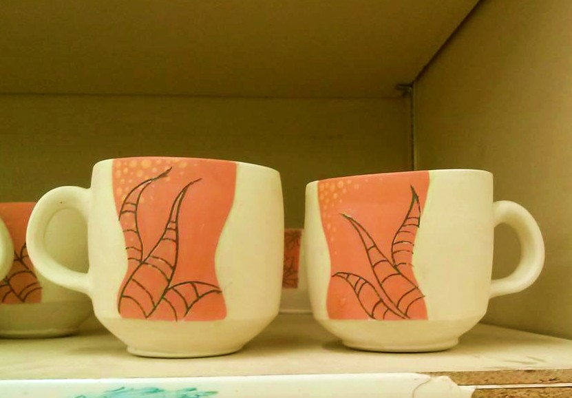 I’m continuing the aloe surface design, because it seems to be successful. The form design, however, is brand new! Lately I have been making a lot of lattes and cappuccinos at home, so I decided it would be a great idea to make cappuccino/latte mugs based on my latest bowl form.