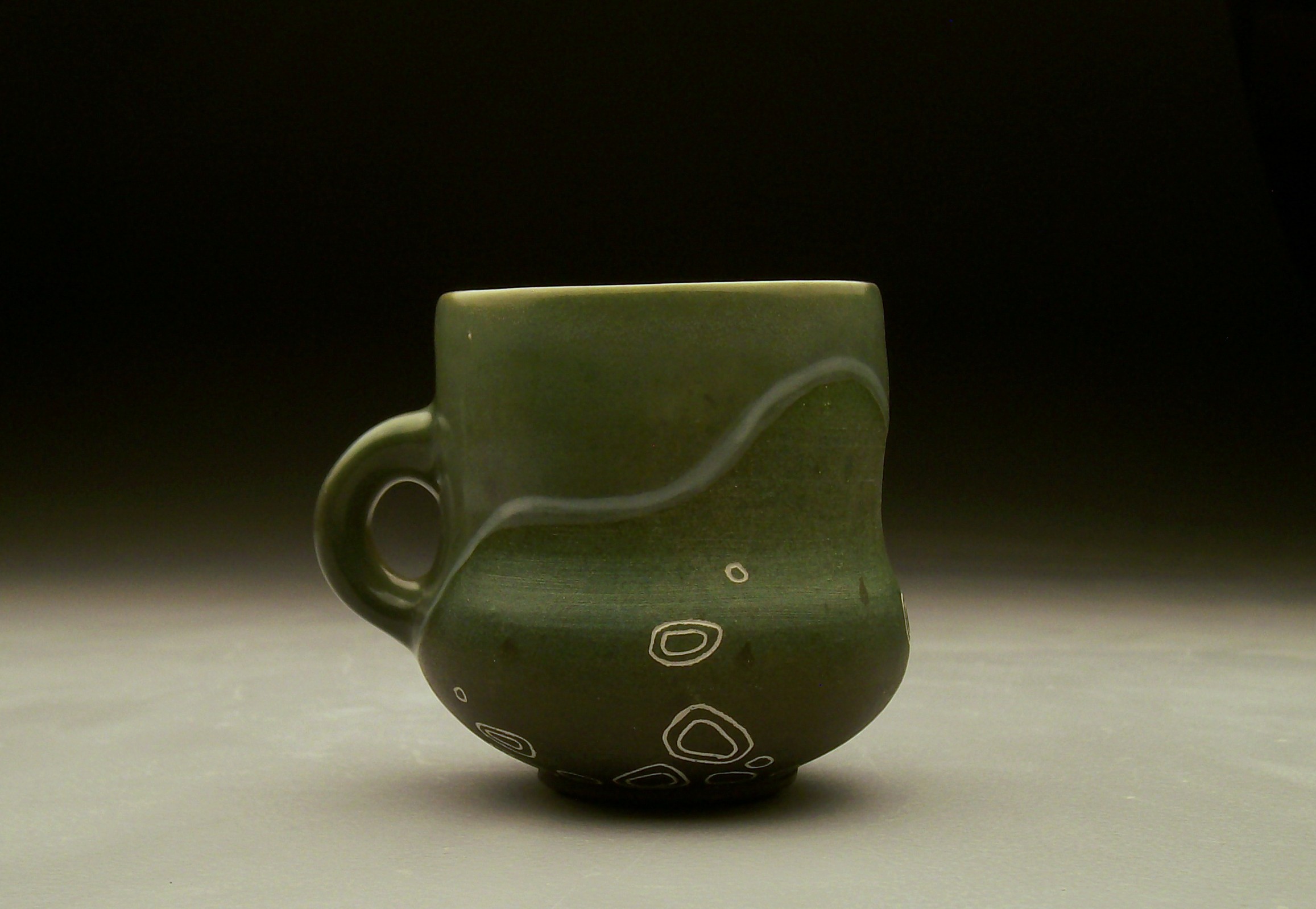 Perfect is a loaded word, for sure. But I am seriously so happy with how these mugs have been coming out of the kiln. They are exactly how I envisioned them when I came up with the design. Sure, they might not be perfect, but I am happy with them. The glaze turned out perfectly satiny and just hazy enough to make the separation between glaze and under glaze noticeable (aside from the obvious texture difference). The under glaze was easy to sand smooth. I am making these mugs in all sorts of color variations, fading from dark to light colors and the other way around. Sometimes I just put a solid color on the whole thing and let the glaze do the rest of the work.