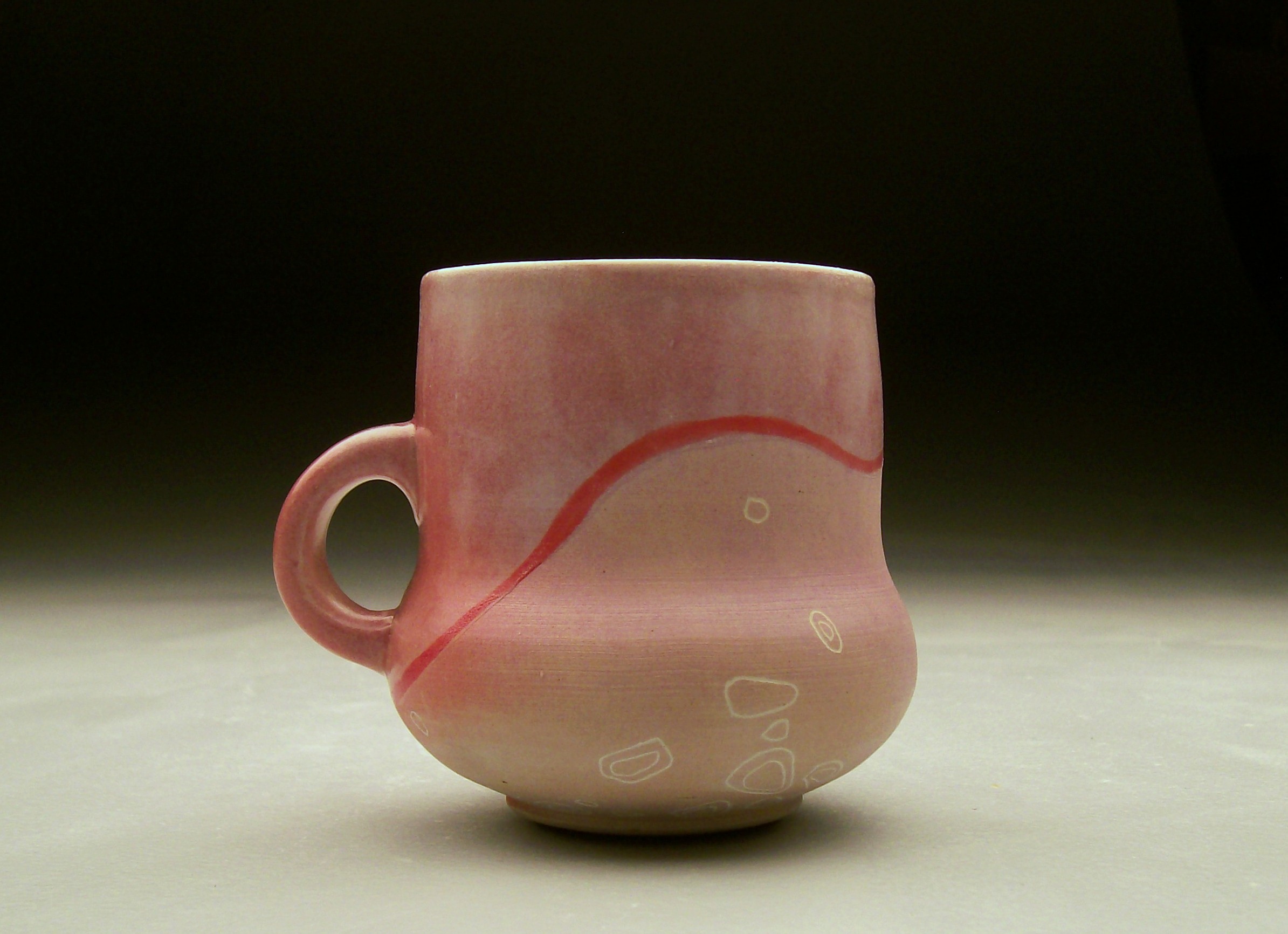 And finally, my first ever PINK pot. A while ago, my little sister asked if I could make her something pink, but I wasn’t sure of the best way to do it. The underglaze I actually used for this is labeled violet and maroon, but it appears to be pretty pink after the firing.